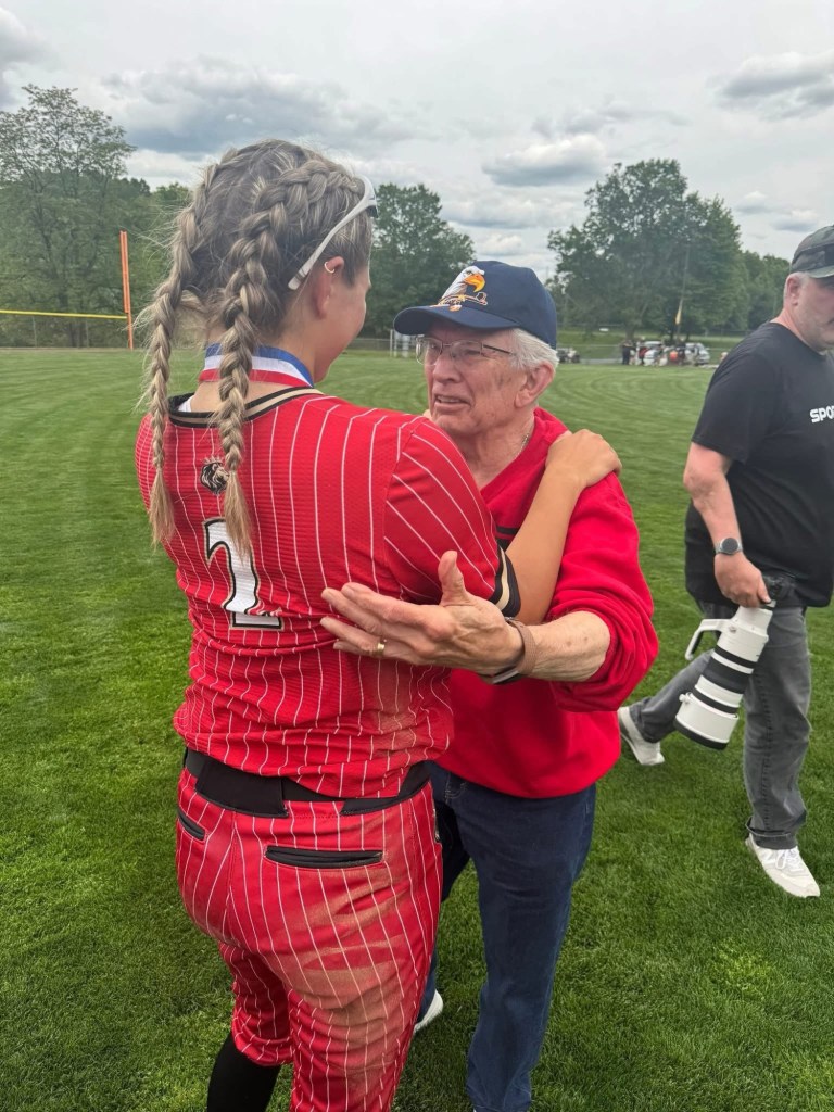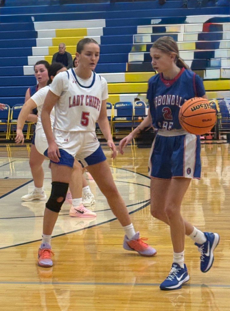 They sat together up on the bleachers — not split up, not locked in silence, not glued to their phones — but together. Watching Lakeland and Carbondale battle it out, cheering at the right moments, smiling like a group that genuinely enjoys being in the same space. It was camaraderie in real time: a few jokes tossed around, laughs that carried, little stories shared back and forth like they were passing the ball even when they weren’t on the floor yet.